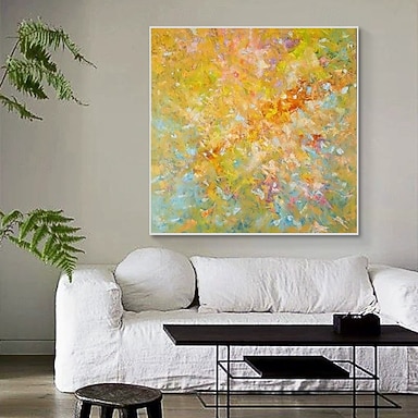 Handgemaltes Ölgemälde auf Leinwand, abstrakt, gelb, für die Wanddekoration im Wohnzimmer, auf Keilrahmen gespannt / gerollt, ungespannt, rahmenlos