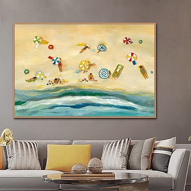 Mintura handgefertigte Strandlandschafts-Ölgemälde auf Leinwand, Wandkunst, Dekoration, modernes abstraktes Bild für Wohnkultur, gerolltes, rahmenloses, ungedehntes Gemälde