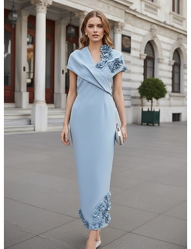 A-Linie Knöchellänge Partykleid Cocktailkleid Kurzarm V Ausschnitt Elegant Vintage Hochzeitsgast Satin Polyester Brautmutterkleid mit Blume