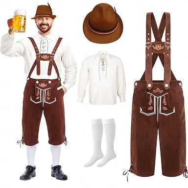 Oktoberfest Lederhosen Hemd Alpenhut Bayerisch Deutsch Wiesn Herren Karneval Party Bier Festival Stoff im traditionellen Stil Bluse Shorts Austattungen