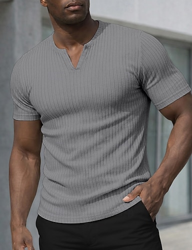 Herren T Shirt Muskelshirt Geripptes Strick-T-Shirt T-Shirt Kurzarm Kurze Ärmel V Ausschnitt Gekerbt Sommer Frühling Ganzjahres Einfach Texture Grubenstreifen Mode Designer Basic Rundhalsausschnitt
