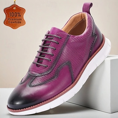 Modische Herren-Anzugschuhe aus echtem Leder in Lila, einzigartiges Design für Hochzeiten und besondere Anlässe.