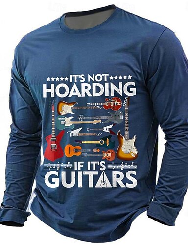 Herren Gitarre Lustiger Slang T Shirt Langarm T-Shirt 3D-Druck Rundhalsausschnitt Hemd Mode Täglich Basic Lässig Täglich Straße Blau Schwarz Grün Sommer Frühling Bekleidung S M L XL XXL XXXL