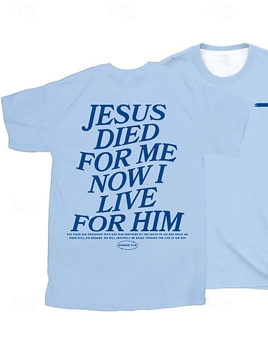 Herren Bibel Jesus T-Shirt Kurzarm T-Shirt 3D-Druck Rundhals-Shirt Designer Lässig Party Feiertag Hellblau Schwarz Weiß Sommer Frühling Kleidung Apparel