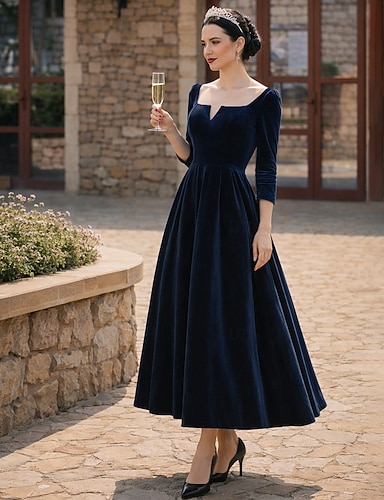 A-Linie Knöchellänge Partykleid Cocktailkleid Kleid für Hochzeitsgäste Brautmutterkleid Langarm V Ausschnitt Elegant Hochzeitsgast Hochzeitsfeier Samt mit Falten