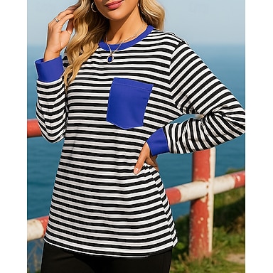 Damen Streifen Pullover Lässige Oberteile Herbst Langarm Athleisure Mode Outdoor Reise Schwarz Weiß Rot Sportbekleidung Sportkleidung