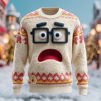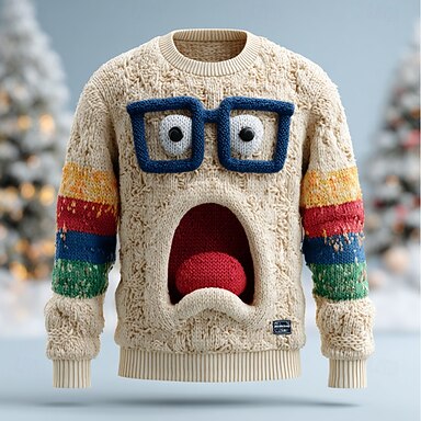 Hässlicher Weihnachtspullover Herren Weihnachtsmann Druck Pullover Strickware Rundhalsausschnitt Lässig Urlaub Täglich warm halten Langarm Frühling Herbst Winter Rote Purpur Grün