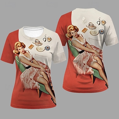 T-Shirt Retro Poster Retro-Mädchen 1950er Retro Vintage T-Shirt Ärmel Grafik für Damen Erwachsene 3D-Druck für Maskerade Täglich Urlaub Party