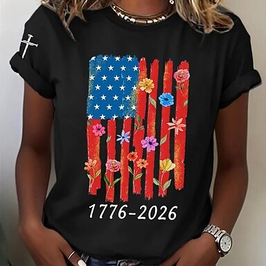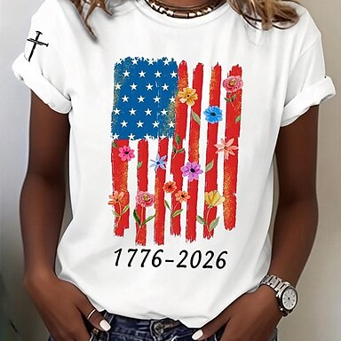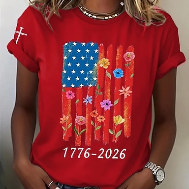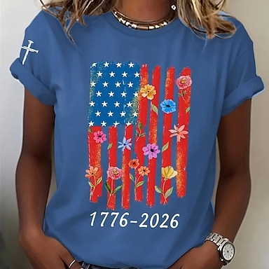 Amerikanischer Unabhängigkeitstag Damen T Shirt Druck Ombre Grafik Stern Vintage Stilvoll Klassisch Kurzarm V Ausschnitt Normale Oberteile Täglich Blau Sommer Frühling