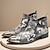 Herrenstiefel aus echtem Leder in Weiß und Schwarz mit Blumenmuster und Schlangenmuster – modisches Schuhwerk für die Freizeit und besondere Anlässe