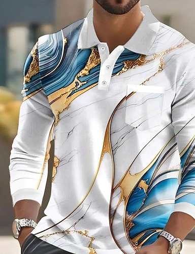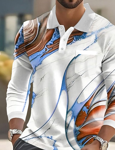 Herren Geometrisch Polo Kurzarm Polo-Shirts Hemden mit Kragen Business-Casual Outdoor Athleisure Alltagskleidung 3D-Druck Knöpfe Frühling & Sommer Blau Rote Braun