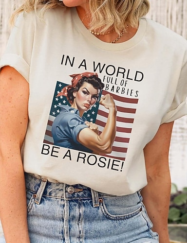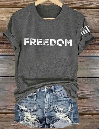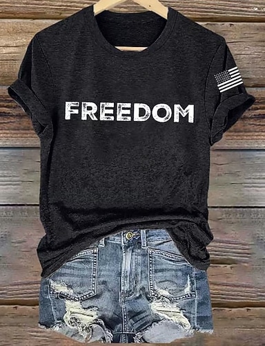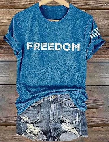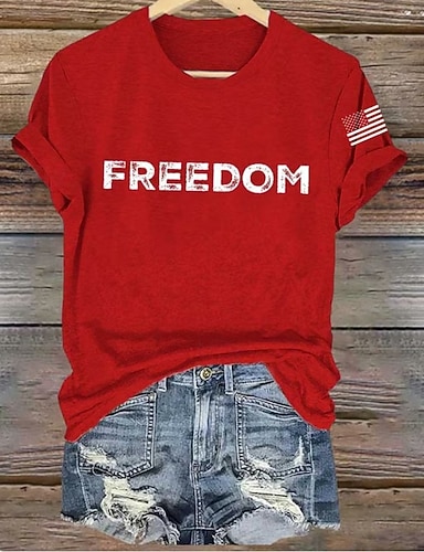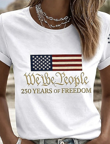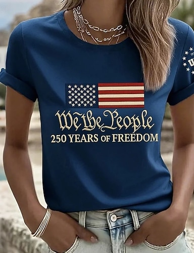 Unabhängigkeitstag Patriotisches Damen T-Shirt Grafik Buchstaben Vintage Stilvoll Klassisch Kurzarm Rundhals Reguläre Oberteile Täglich Wochenende Druck Blau Schwarz Weiß Rot Sommer Frühling