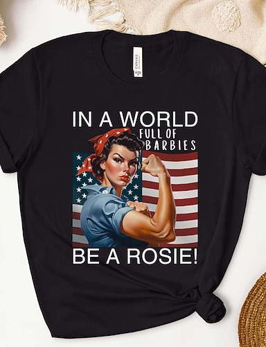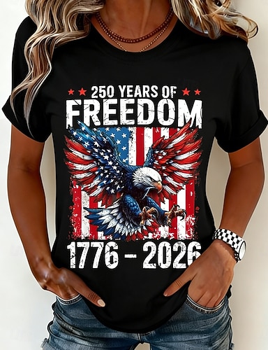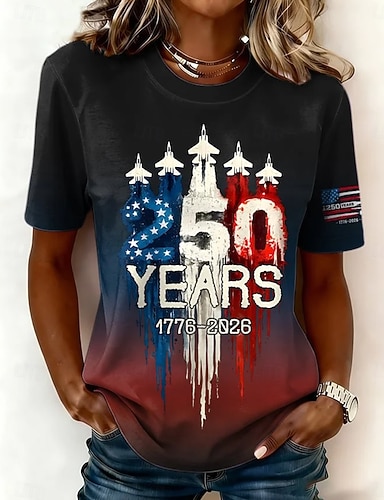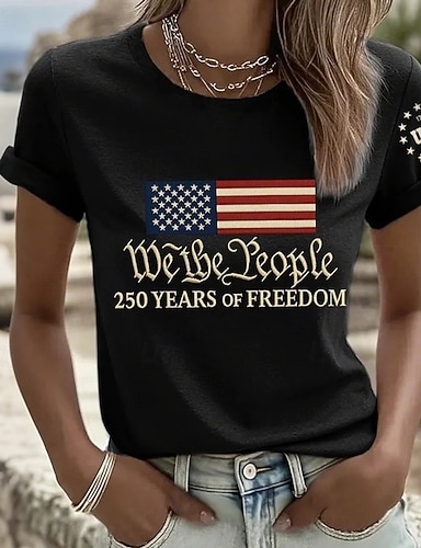 Unabhängigkeitstag Amerikanischer Jubiläum Patriotic Damen T-Shirt Print Grafik Flagge Buchstabe Stylish Klassisch Lässig Kurzarm Rundhals Reguläre Tops Alltag Blau Schwarz Rot Sommer Frühling