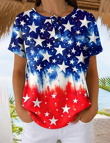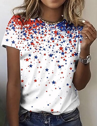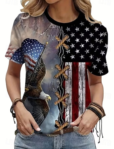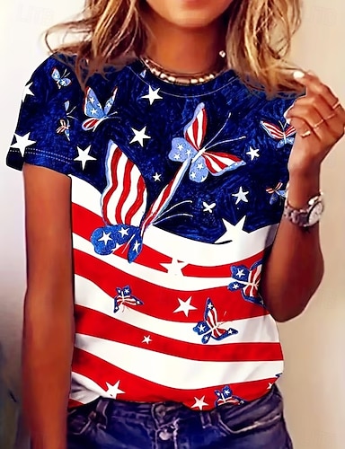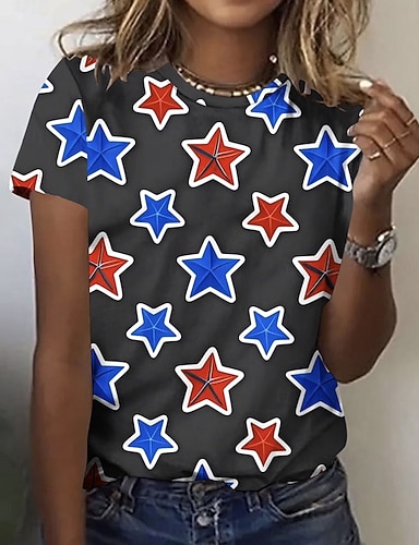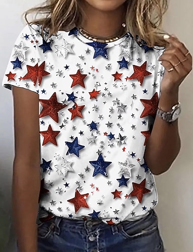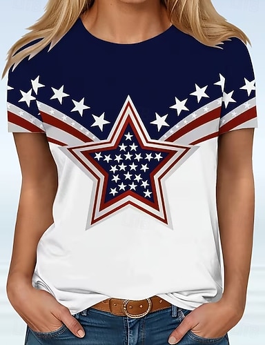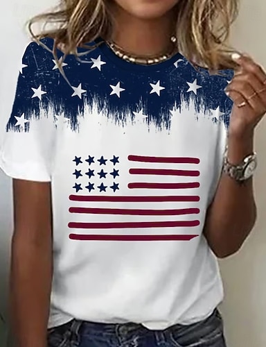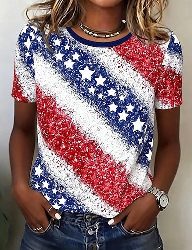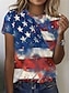 Amerikanischer Unabhängigkeitstag Damen T Shirt Druck Grafik Amerikanische Flagge Mode Stilvoll Klassisch Kurzarm Rundhalsausschnitt Normale Oberteile Lässig Täglich Blau Rote Sommer Frühling