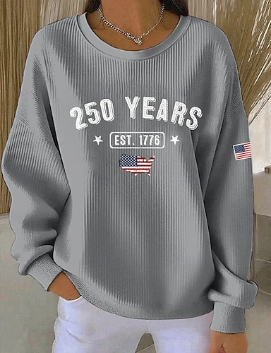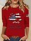 Amerikanischer Unabhängigkeitstag Damen T Shirt Druck Grafik Flagge Stilvoll Klassisch Lässig Langarm Rundhalsausschnitt Normale Oberteile Täglich Blau Weiß Rosa Rote Beige Sommer Frühling