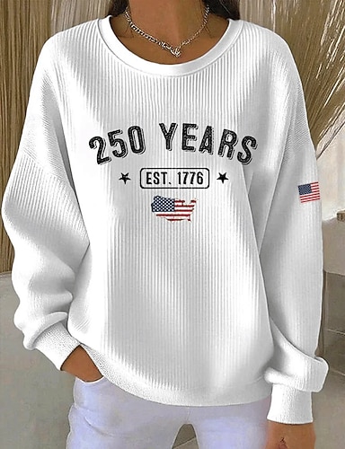 Unabhängigkeitstag Amerikanisches Jubiläum Patriotischer Damen T-Shirt Grafik USA Flagge Mode Stilvoll Klassisch Langarm Rundhalsausschnitt Täglich Wochenende Druck Schwarz Weiß Rot Sommer Frühling