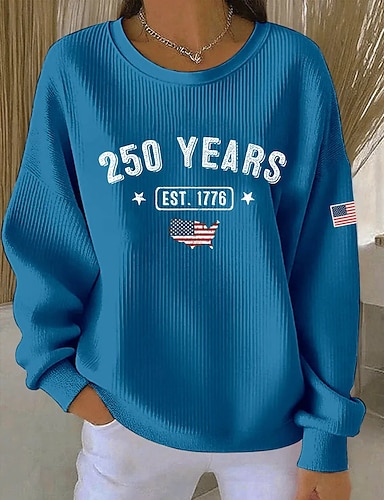 Unabhängigkeitstag Amerikanisches Jubiläum Patriotisches Damen T-Shirt Grafische Flagge Stilvoll Lässig Langarm Rundhals Alltagsdruck Blau Rot Rot Blau Sommer Frühling Herbst Winter