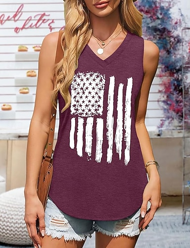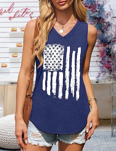 Amerikanischer Unabhängigkeitstag Damen Tank Top Druck Grafik Flagge Vintage Tropisch Stilvoll Ärmellos V Ausschnitt Normale Oberteile Täglich Blau Rote Marineblau Beige Sommer Frühling