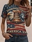 Amerikanischer Unabhängigkeitstag Damen T Shirt Druck Grafik Flagge Buchstabe Vintage Stilvoll Klassisch Kurzarm Rundhalsausschnitt Rundhals Normale Oberteile Täglich Blau Schwarz Weiß Rote Sommer