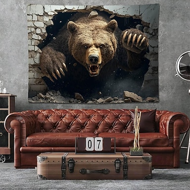 Realistischer 3D-Wandteppich mit Grizzlybär – ein wildes Tier, das durch die Wand bricht. Wanddekoration für Männerhöhle, Jungenzimmer, Spielzimmer, Hintergrund – ein tolles Geschenk für Männer.