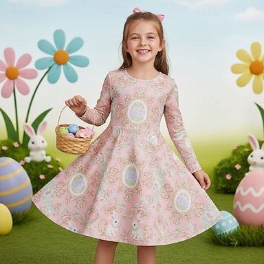 Ostern Mädchen' 3D Grafik Kaninchen Kleid Langarm 3D-Druck Frühling Herbst Täglich Urlaub Party Lässig Prinzessin Schön Kinder 4-12 Jahre Freizeitkleid A Linie Kleid Knielang Normale Passform