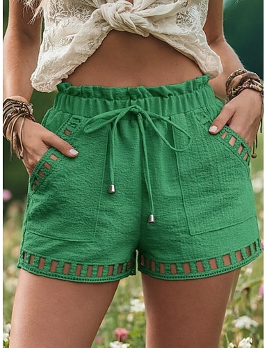 Damen Shorts aus Baumwollleinen Leinen-inspirierte Shorts Shorts Sommershorts Urlaub Mode Lässig Kurz Mittlere Taille Kordelzug Tasche Komfort Weich Atmungsaktiv Dehnbar Outdoor Strand Ferien Schwarz