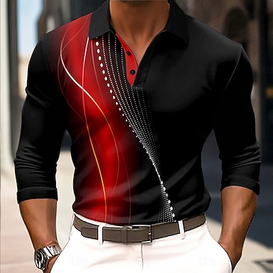 Herren Geometrisch Linie Polo Langarm Polo-Shirts Hemden mit Kragen Business-Casual Geschäft Athleisure Alltagskleidung 3D-Druck Knöpfe Frühling Herbst Winter Meerblau Rote Blau