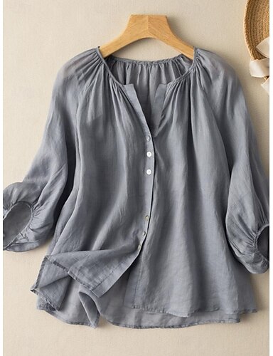 Damen Bluse Kunstbaumwollleinen Knöpfe Einfarbig Stilvoll Lässig Dreiviertelarm Rundhalsausschnitt Normale Oberteile Täglich Blau Purpur Aprikose Sommer Frühling
