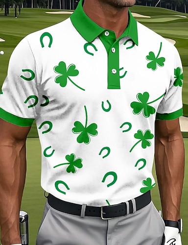 St. Patrick's Day Herren Shamrock Golf Polo Shirts Sport Polo Shirts Kurzarm Polo-Shirts Kragen-Shirts Freizeit Athleisure Alltagskleidung Festival Outfit Knöpfe Frühling Sommer Schwarz Weiß Hell