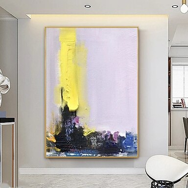 handgefertigtes handgemaltes Ölgemälde Wandkunst abstrakt schwarz gelb und weiß Heimdekoration Dekor gerollte Leinwand ohne Rahmen ungedehnt