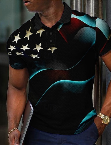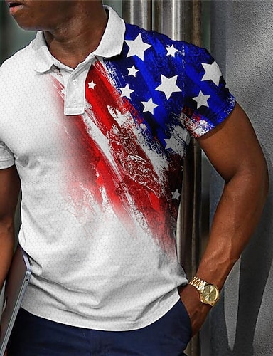 4. Juli 2026 250. Herren Veteranen Patriotisch Poloshirts mit Reißverschluss Golfshirt Kurzarm Polo-Shirts Hemden mit Kragen Lässig Streetwear Urlaubskleidung Party-Outfits 3D-Druck