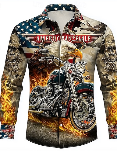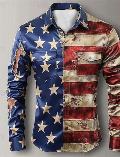 Grafik Amerikanische US-Flagge 250. Jahrestag des Unabhängigkeitstages der USA am 4. Juli Hemd Durchgeknöpft Hemd Freizeithemd Langarm Hawaiianisch Lässig Bequem Outdoor Urlaub Straße Frühling Herbst