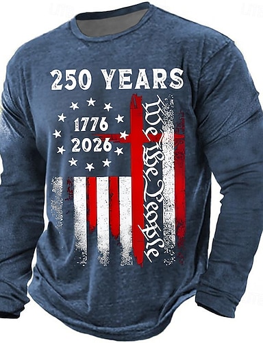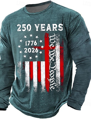 4. Juli 2026 250. Gedenktag Herren 3D Druck US Flagge Rundhals Langarm T-Shirt Freizeit Alltag