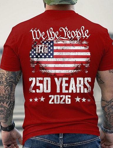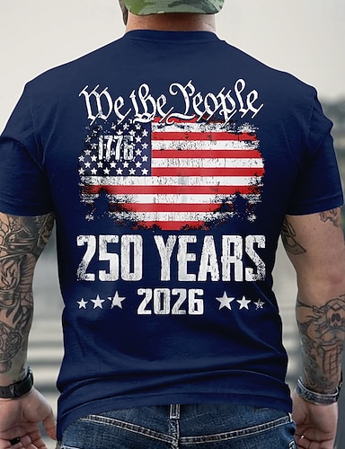 4. Juli 2026 250. Gedenktag Herren Patriotischer Patriot Grafik 3D Druck Amerikanische Flagge Veteran Crew Neck Kurzarm T-Shirt Freizeit Alltag Sport Straße