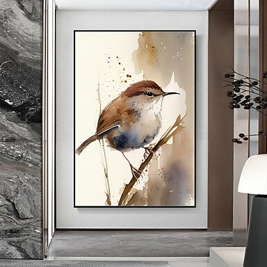 Ölgemälde auf Leinwand, Wandkunst, Dekoration, moderne abstrakte Vogel-Aquarellmalerei für Wohnkultur, gerollt, rahmenlos, ungedehnt