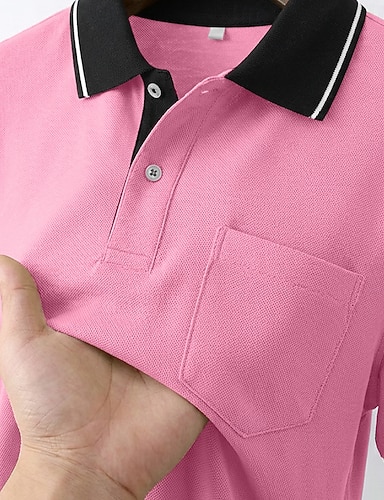 Herren Golfshirt Piqué-Poloshirt Lässig Arbeit Revers Gerippter Polokragen Kurzarm Basic Modern Farbblock Patchwork Tasche Sommer Frühling Frühling & Sommer Normale Passform Rosa Wein Grün Grau