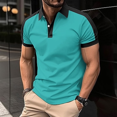 Herren Business-Polo Golfhemd Geschäft Casual Kargen Klassisch Kurzarm Farbblock Knopf Sommer Frühling & Herbst Hellrosa Cachi scuro Schwarz Weiß Hellgrün Marineblau Business-Polo
