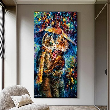 handgefertigte handgemalte Wandkunst moderne abstrakte Leonid Afremov Katze Heimdekoration Dekor gerollte Leinwand ohne Rahmen ungedehnt
