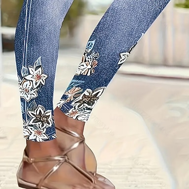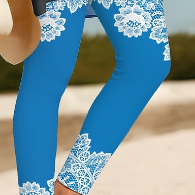 Damen Leggings Urlaub Vintage Mode Knöchellang Hohe Taille Grafik Paisley-Muster Blume / Blumenmuster Drucken Weich Atmungsaktiv Dehnbar Täglich Outdoor Urlaub Hellhimmelblau Frühling Herbst Winter