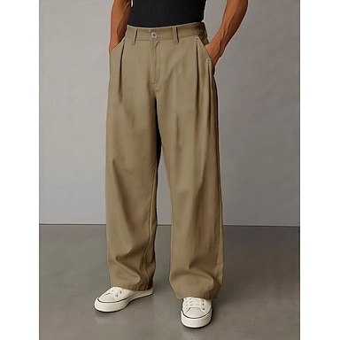 Herren Hose Anzughose Tasche Geschichtet Gerader Schnitt Einfach Komfort Weich Volle Länge Täglich Outdoor Ausgehen Mode Streetwear Weiß Khaki Mikroelastisch