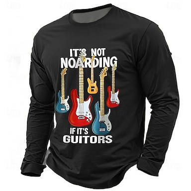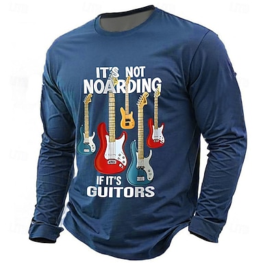 Herren Gitarre Lustiger Slang T Shirt Langarm T-Shirt 3D-Druck Rundhalsausschnitt Hemd Mode Täglich Basic Lässig Täglich Straße Blau Schwarz Rote Sommer Frühling Bekleidung S M L XL XXL XXXL