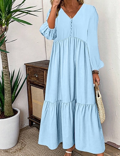 Damen Midikleid Kunstbaumwollleinen Shiftkleid Kaftan Kleid Freizeitkleid Mode Klassisch Modern Outdoor Urlaub Ferien Normale Passform Einfach Langarm V Ausschnitt Schwarz Wein Hellgrau Leicht Blau
