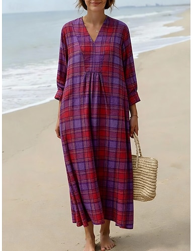 Damen Maxidress Casual kleid Boho-Kleid Kuschelig Stilvoll Brautkleider schlicht Urlaub Täglich Lockere Passform Graphic 3/4 Ärmel V Ausschnitt Rote Blau Orange Sommer Frühling Herbst