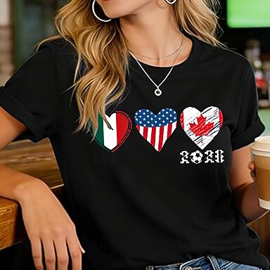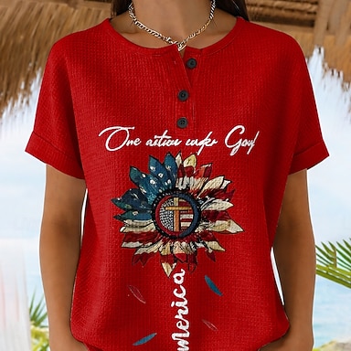 Amerikanischer Unabhängigkeitstag Damen T Shirt Druck Grafik Buchstabe Amerikanische Flagge Stilvoll Klassisch Lässig Kurzarm Rundhalsausschnitt Normale Oberteile Täglich Blau Schwarz Weiß Rote