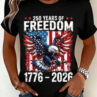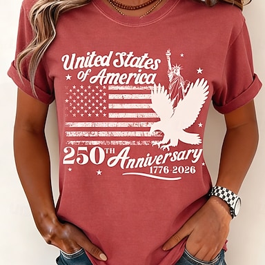 Amerikanischer Unabhängigkeitstag Damen T Shirt Druck Grafik Amerikanische Flagge Vintage Stilvoll Klassisch Kurzarm Rundhalsausschnitt Normale Oberteile Täglich Schwarz Weiß Rote Sommer Frühling