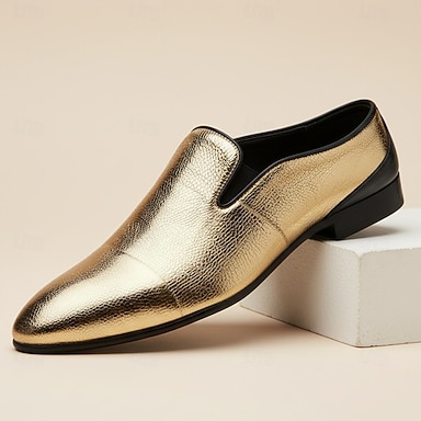 Goldfarbene Herren-Slipper aus Kunstleder – elegante Business-Schuhe für Büro, Abendveranstaltungen und Alltag