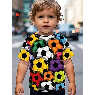 Jungen 3D Grafik Fußball T-Shirt Kurzarm 3D-Druck Sommer Frühling Sport Mode Streetwear Kinder 4-12 Jahre Rundhalsausschnitt Outdoor Lässig Täglich Normale Passform