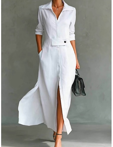 Damen Maxikleid Hemdblusenkleid Weißes Kleid Freizeitkleid Arbeitskleidung Elegant Mode Modern Täglich Büro Normale Passform Einfach Langarm Hemdkragen Blau Schwarz Weiß Rosa Sommer Frühling
