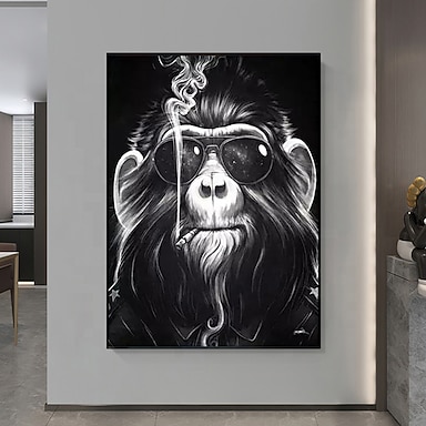 Handgemachtes Ölgemälde auf Leinwand, Wandkunst, Dekoration, modernes Tier, cooler schwarzer Affe, für Wohnkultur, gerolltes, rahmenloses, ungedehntes Gemälde