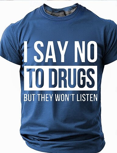 Humorvolles Grafik T-Shirt für Herren | 'Ich sage Nein zu Drogen aber sie hören nicht' Wortspiel Tee | Kurzarm